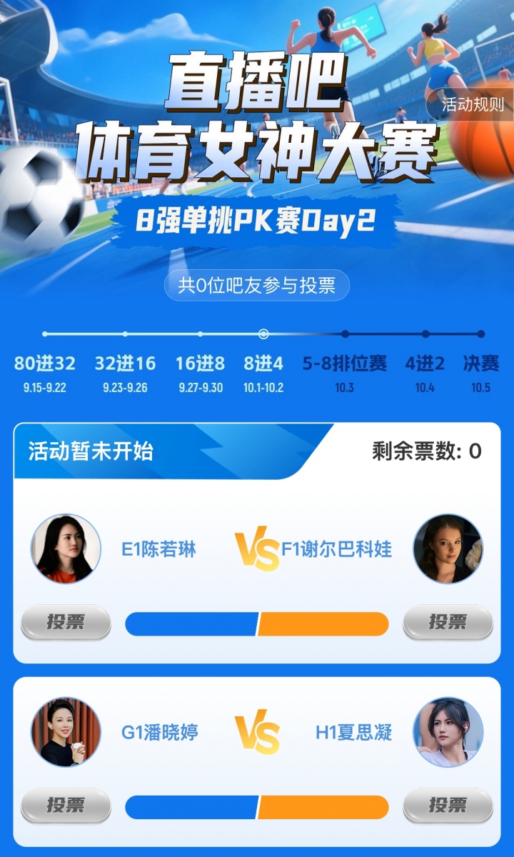 直播吧女神大赛8强赛Day1赛果:王欣瑜险胜刘湘 吴柳芳淘汰俞俐均