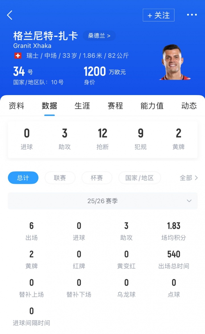 33岁的瑞士中场扎卡本赛季为桑德兰出战了6场比赛,贡献3个助攻。六场比赛他获得的sofascore评分分别为:6.6、6.9、7.5、7.7、6.9以及8.5。另一家评分机构WhoScored的数据则显示扎卡是英超本赛季目前为止评分最高的中场球员。