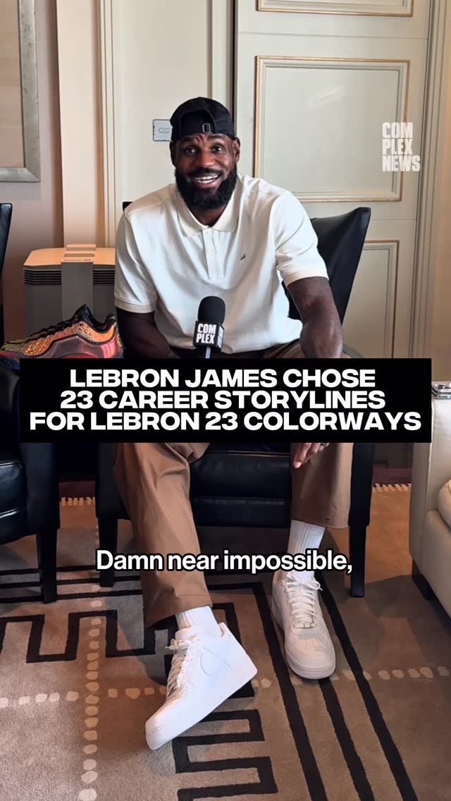 “在我所做的任何事上,叙事都处于食物链的顶端,无论赛场内外。这次我们又能讲述我在赛场内外所经历的一些最佳时刻,并将之带给消费者和我的球迷,带给追随了我20多年生涯的人们。今天所发布的配色当然是我和布朗尼的那款——天意与决意(The Chosen One and the One Who Chose)。这对我当然是非常特别的一刻,任何涉及家庭的事情都是如此。这次包含一些热火时期的故事,还包括我在面对一些球队时的经典战役,然后就是一些我在生涯中所经历的破纪录时刻或者是值得铭记的比赛,那些也会引起许多人的共鸣。我对这些也很期待。”