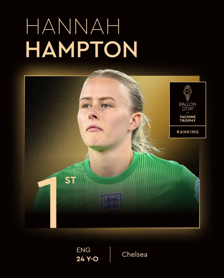 荣获女足雅辛奖!切尔西女足门将汉普顿:爷爷我想你,我做到了