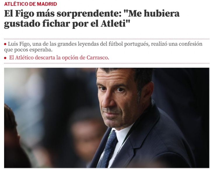 好家伙!菲戈坦白:除了皇萨我本来还想去马竞,在那踢球让人兴奋